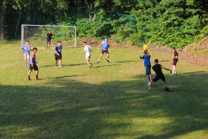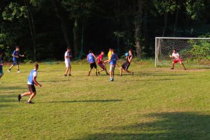 Η μέρα όμως, δεν τελειώνει εδώ! Αφού ξεκουραστούμε και γεμίσουμε μπαταρίες, αρχίζει ο δεύτερος γύρος δράσης με τα παραδοσιακά πρωταθλήματα ποδοσφαίρου και μπάσκετ. Τα δίχτυα τόσο στα τέρματα, όσο και στις μπασκέτες κουνήθηκαν ουκ ολίγες φορές, αν και όχι πάντα απ΄ την εσωτερική μεριά. Όταν το καμπανάκι σημάνει την λήξη της ελεύθερης ώρας που έχει απομείνει, προτασσόμαστε σε σειρές για την υποστολή της σημαίας και στην συνέχεια, με θέα την δύση του ηλίου συγκεντρωνόμαστε για την ωφέλιμη «ώρα ομάδας». Το βραδινό φαγητό που εδώ και ώρα τρυπάει την μύτη μας, φαντάζει ως η επιβράβευση για την τρανή παρουσία μας σε όλη την ημέρα. Αφού ευχαριστήσουμε τον Θεό για το πλούσιο γεύμα, ανηφορίζουμε στο πιο μοναδικό, στο πιο όμορφο σημείο της κατασκήνωσης, το εκκλησάκι μας. Στην βραδινή αυτή προσευχή είναι που ο καθένας μας νιώθει τη μεγαλύτερη ευτυχία. Είναι η στιγμή που καταλαβαίνεις, πως στο μέρος αυτό, με τους συγκατασκηνωτές, μπορείς πραγματικά να νιώσεις τον Θεό δίπλα σου. Και έτσι με την ψυχή γαλήνια κλείνουμε τα μάτια μας και περιμένουμε το επόμενο πρωί…Ξημέρωσε.