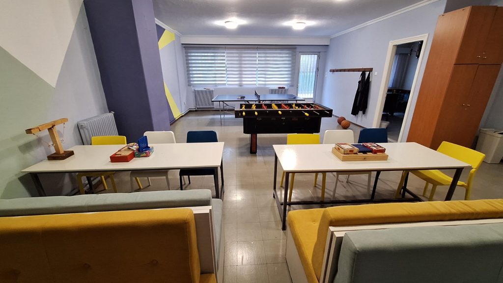 Το εντευκτήριο αποτελεί τον χώρο συνάντησης των παιδιών μεταξύ τους, αλλά και με τον κατηχητή τους. Πρόκειται για έναν χώρο που διαθέτει πλήθος παιχνιδιών μεταξύ των οποίων ποδοσφαιράκι, Ping-Pong, Playstation, επιτραπέζια παιχνίδια καθώς και έναν μικρό προαύλιο χώρο που προσφέρεται για παιχνίδι. Αποτελεί μία “όαση” μέσα στην υλιστική και απομακρυσμένη από τον Θεό κοινωνία, καθώς προσφέρει την δυνατότητα σε παιδιά όλων των σχολικών ηλικιών να συναναστραφούν με συνομηλίκους τους, να συζητήσουν, να συνομιλήσουν για επίκαιρα θέματα και να παίξουν όλοι μαζί.